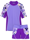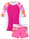 Our Seaside 2-piece swim shirt and board short sets are fashionable, designed with colorful prints and offer great sun protection for girls from 12 months up to 14 years
