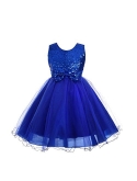 Full-lined dress is featured with sparkling sequins details on the bodice. Classical elegant round neck sleeveless design.