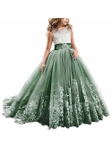 Luxury junior bridesmaid dresses for girls, lace tulle flower girls junior bridesmaid wedding dress, first holy communion dresses for girls, sleeveless pageant dresses for girls, princess long girls pageant dresses kids prom puffy tulle ball gown.