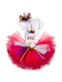 3pcs outfits unicorn clothing sets; 3pcs outfits baby birthday clothing sets.The unicorn pattern and numberoneor "two" witn crown and wreath were printed on the T-shirt .Rainbow-colored and colorful multi-layered tutu skirts.