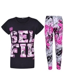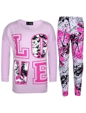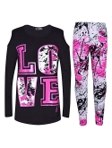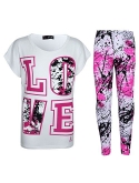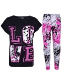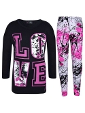 Kids Girls LOVE Print T Shirt Top & Splash Print Fashion Legging Set