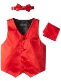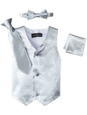 Lined vest with button closure Matching pre-knotted clip tie included Matching bow tie included Matching pocket square included Quality construction- made to last for years