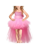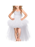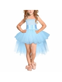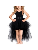 Little girl's tulle spliced tutu evening short A-Line summer beach photography prop dress, lightweight layered wedding party tutu graduation skirt,features sleeveless slim bodice and high low hem