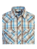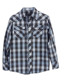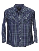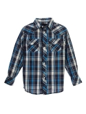 Boys Casual Western Plaid Long Sleeve Pearl Snaps Shirt