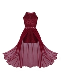 1 layer maxi length chiffon overlay is attached around the waist. Full lining. Beautiful and stylish dress for your girl