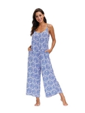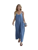 Adjustable Spaghetti strap jumpsuit, sleeveless jumpsuit for women, wide leg pants, two sides pockets, long romper for women. Very casual and sexy jumpsuits for women.