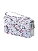 Women's Double Zipper Wallet Large Clutch Cellphone Bag with Wristlet and ID Window