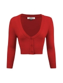 This Ladies' Cropped, Fitted Bolero Cardigan Sweater with Buttons is Versatile, Lightweight and Vintage-Inspired. Soft and Cozy Acrylic Blend with Spandex Knit.