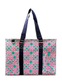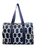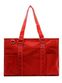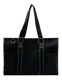 Top zipper closure Double Canvas Handles, Handle Drop 9" 3 open pockets and 1 Velcro closure pocket, 2 net pockets & 1 small pocket on side material: canvas, Wipe clean interior Dimensions: 15"(L)x 10"(h)x 6"(w)