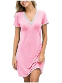 FEATURES: Sexy Lace Trim V neck, short sleeve, solid color and loose fit design are simple and elegant. Perfect for relaxing evenings, sweet dreaming or lounging, also great for your friends, mother and sister as a birthday or Christmas gift.