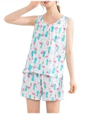 CLASSIC PAJAMAS DESIGN: Women's sleeveless round-collar printed pajama, with drawstring elastic shorts, let you relax and comfortable, this sleep tops design with sexy sleeveless, fully show the charm of women. Our pajama has a variety of cute cartoon prints, suitable for different age groups, making you look more younger