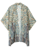 Kimono cardigan with fashion national print,bohemian style,animal and flowers print,and rich colors like black,white,red,blue,yellow,pink for your choosing