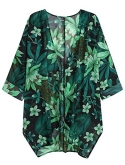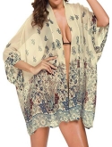 Beach cover up for women,raglan batwing short sleeve,sheer boho loose style,open front floral printed