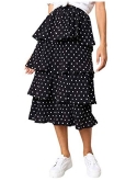 Fashion design: 3 tiered pleated ruffle skirt with graceful skirt and elastic waist, suitable and comfortable. 4 tiered pleated ruffle skirt with polka dots printed.