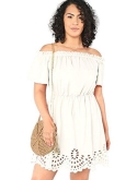 Features: Plus Size, Off the Shoulder, Cut Out Floral Pattern, Scalloped Hem, Short Sleeve, Short Dress