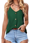 Feature: Sexy V Neck Sleeveless, Button Down, Loose Fit, Adjustable Spaghetti Strap, Solid Color Design