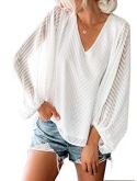 Aleumdr Womens Crochet Lace V Neck 3/4 Sleeve Button Down Blouse Tops
