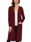 Womens Open Front Long Cardigans Solid Button Down Knit Sweater Coat with Pocket