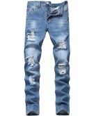 With ripped design on the knee,those jeans show your charming taste and keep you in fashion style