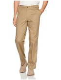 Straight fit Flat front Featuring wrinkle free and stain repel fabric Permanent crease Leg opening: 17.75 inches