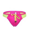 Enticing front coverage and a thong back,low rise cut,drawstaring closure,quick dry,no see through when wet