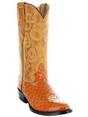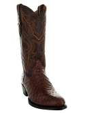 Ostrich Exotic Print Cowboy Boots Comfortable leather lining and Cushioned Insole Classic Round Toe Design Handcrafted Good Year Welt Construction Stacked leather heel with rubber heel for grip.