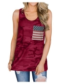 Women's American flag print racer back tank tops-made of Polyester+Cotton, One side pockets, Comfortable and breathable.