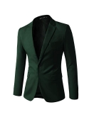 Men's Slim Fit Suits Casual Flap Pockets Solid Blazer Jacket featuring single-breasted one-button closure, flap pockets at sides, padded shoulders, the left chest pocket is only for design.