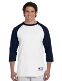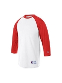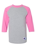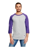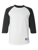Cotton-rich fabric feels great against your skin Contrast raglan 3/4 sleeves for a classic baseball tee look Champion logo patch at bottom hem