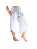 BOHO FLARE CAPRIS - The pants are loose and relaxed at the calf for a flare boho style similar to a cropped Thai or harem pants. The flare capri is not elastic at the calf or ankle.
