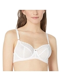 Three panel cup of geometric lace, with stretch lace on the top panel, provides defined, rounded shape and ease of fit