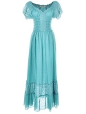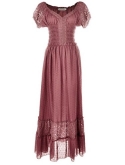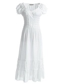 LOVELY, DEATILED RENAISSANCE MAXI - This is a beautiful long sun dress with a smocked waist and floral lace accents. Can be worn on and off the shoulder.