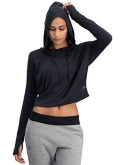 SEXY AND STYLISH PERFORMANCE - When it comes to performance and style, these crop tops for women have all the best features. With a cowl neck, dropped shoulders, and heather tone, these womens tops might be the most fashionable workout clothes you've ever worn. Additionally, the thumb holes keep the sleeves from sliding up as you exercise and help keep your hands warm, while the drawcord ties at the hood, allowing you to easily tighten or loosen it for maximum adjustability.
