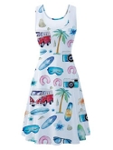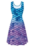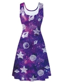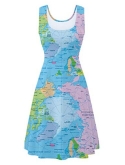 Features: Fashion 3D pattern, scoop-neck, sleeveless, A-line, high waisted, knee length, flexible and Stretchy dress