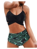 Criss cross bikini top can tie knot front or back, flattering two piece swimsuit, cute wrap swimsuit 2 piece bathing suit
