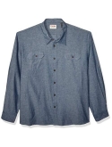 Relaxed fit 2 button front dual chest pockets Gray chambray back neck lining Washed for softness Button cuffs