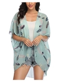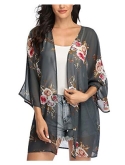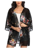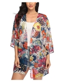 [Premium Material]---This floral kimono cardigan cover ups is made of sheer chiffon, lightweight, comfortable, very soft and flowy.