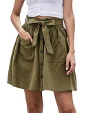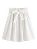 High waist, elastic waist,belted, above knee/short, plain summer A line skirt with button decoration