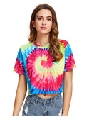 Tie dye prints,round neck,short sleeve,multicolor,and casual crop t-shirt top