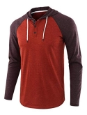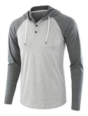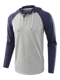 Stylish Casual Sports Jersey Henley Hoodie, Featuring Contrast Sleeve, Hood.
