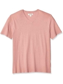 Great for layering or wearing alone, this smooth linen-cotton blend T-shirt features a ribbed V-neck, short sleeves, and a tag-free neck for everyday comfort Model is 6'2" and wearing a size M
