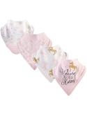 Set of Bandana Bibs with 1 Teether Super soft cotton on baby's skin Option of 2 snap closure to grow with baby Tether is great for baby to gnaw and chew Fun patterns and designs to mix and match