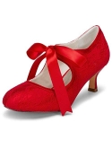 JIAJIA 140311 Stiletto Heel Lace Satin Pumps Ribbon Tie Bridal Wedding Shoes