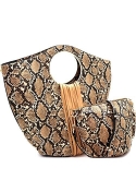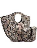 Large 2 in 1 Snake Print: Dimensions - 17"L x 8.4"W x 14"H, 4"drop handle/1 adjustable shoulder strap included/Faux-leather material/Gold-tone hardware/Closure - zipper/Removable inner bag included/