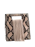 Square Large Snake Print - Dimensions - 14"L x 4.2"W x 14.3"H/ Optional adjustable shoulder strap/ Faux-leather material/ Gold-tone hardware/ Interior - 1 zip and 2 slip pockets/ Closure - zipper/