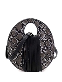 1Round Medium Snake Print: Dimensions - 10.5"L x 3"W x 10"H, 3"drop handles/Optional adjustable shoulder strap/Faux-leather material/Interior - 1 zip and 1 slip pockets/Closure - zipper/