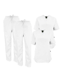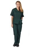 Complete Scrub Set Each professional 2-piece set comes with a V-neck top with two lower pockets and 1/2 Elastic//Drawstring scrub pants with two side and two back pockets. Please! Refer to our sizing chart to find the best fit BEFORE ordering (image attached)