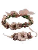 Package Including: 1 x Flower wreath headband; 1 x Floral wrist band