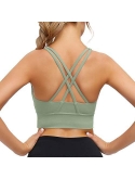 EISHOPEER Women's Strappy Sport Bra Removable Padded Wireless Cross Back Medium Support Workout Yoga Bra Crop Tops