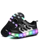 Two wheels-feel like inline skates.the first wheel can be removel, as a single wheels shoes.You can hide the back wheel by pressing button at heels,it will becomes a normal sport shoes.
